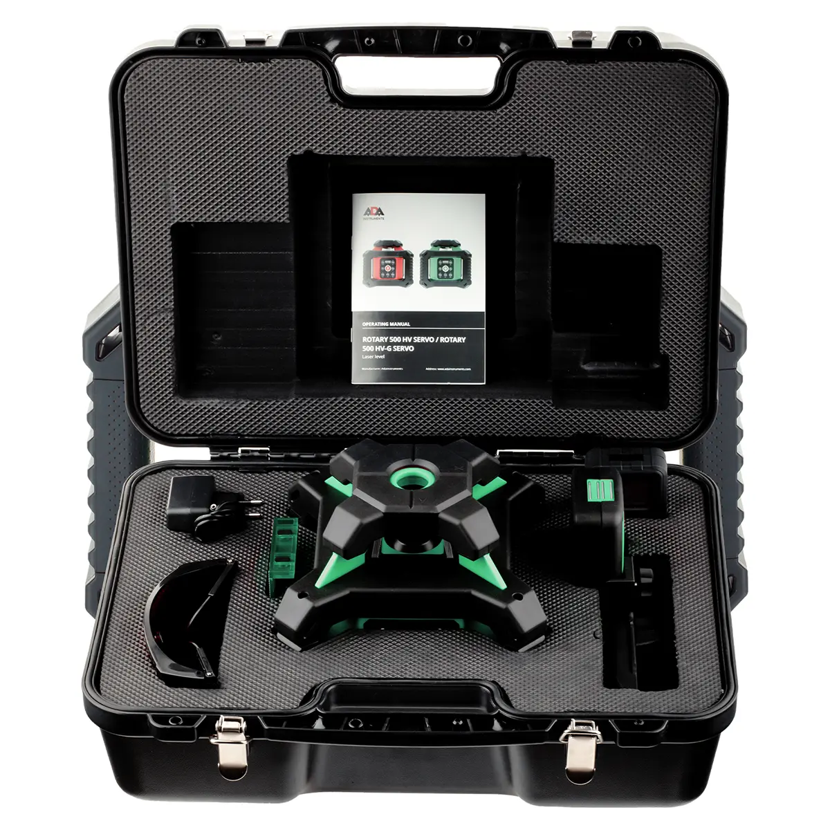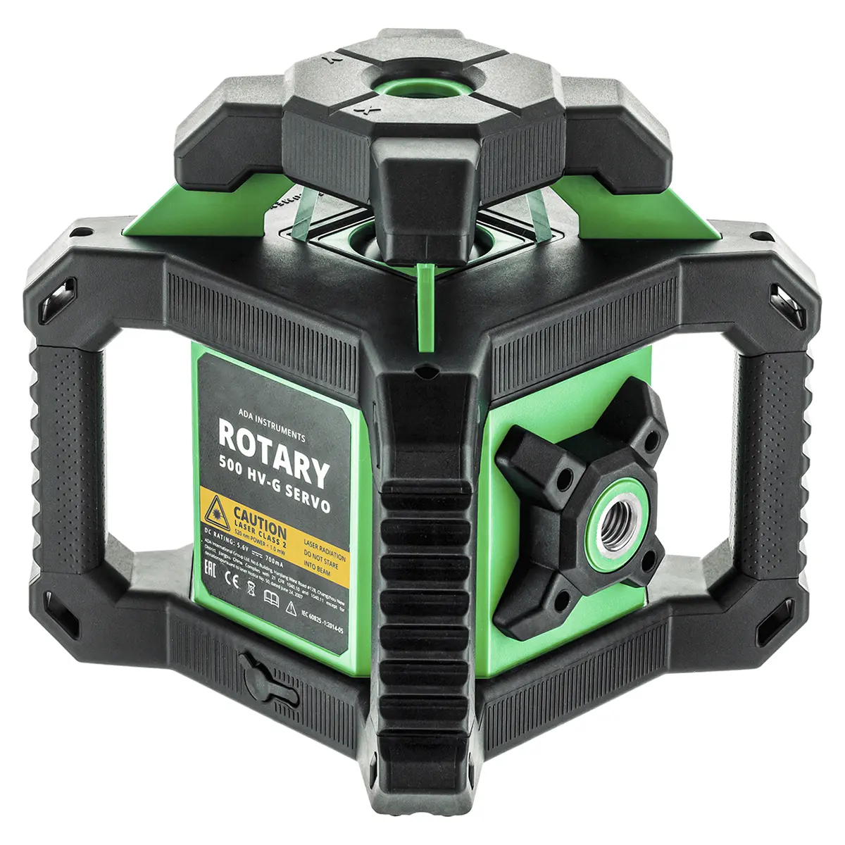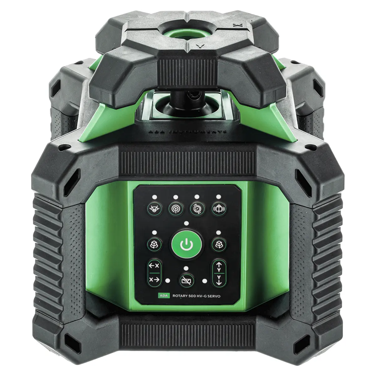 Лазерный нивелир ADA ROTARY 500 HV-G Servo с зеленым лазерным лучом оборудованный электронным компенсатором на сервоприводах. За счет такой конструкции и принципа самовыравнивания повышаются точность прибора - ±0,1мм/м и диапазон компенсации прибора до ±5°. Это способствует более быстрой и точной установке прибора в заданной точке.