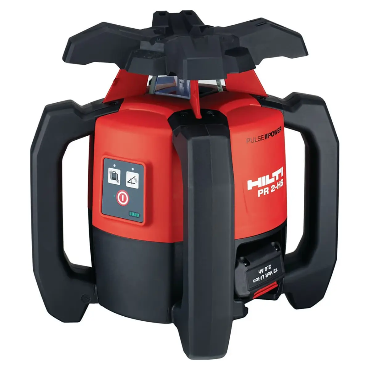 Ротационный нивелир Hilti PR 2 HS A12 выпускается в двух вариантах: с рабочим напряжением 7,2 В и 10,8 В. Они обладают одинаковой точностью и функциональностью, различаясь между собой конструкционным исполнением. Базовое изделие комплектуется аккумуляторным блоком PRA 84, который подходит к другим проецирующим приборам серии PR. Он снабжен полуповоротным запором с крупноразмерной круглой ручкой, что позволяет быстро менять АКБ без инструментов, не снимая защитных перчаток. Комплектный сетевой блок питания PUA 81 поддерживает возможность подзарядки батареи, не извлекая ее из прибора.