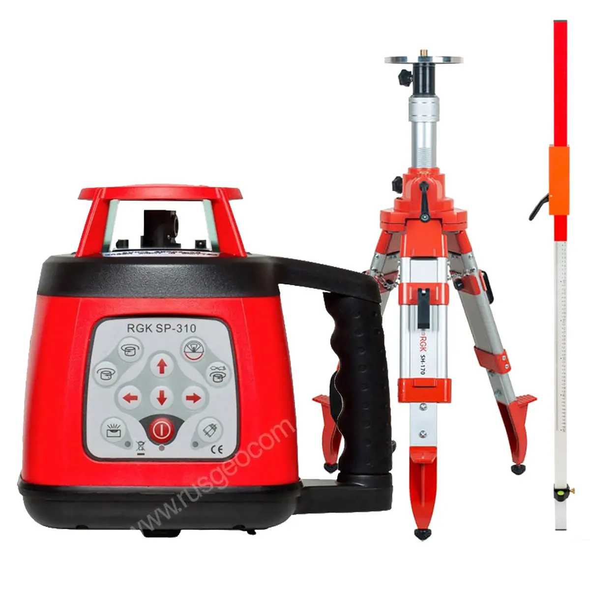 Комплект: ротационный нивелир RGK SP-310 с калибровкой + штатив RGK SH-170, рейка RGK LR-2