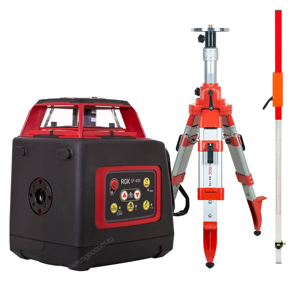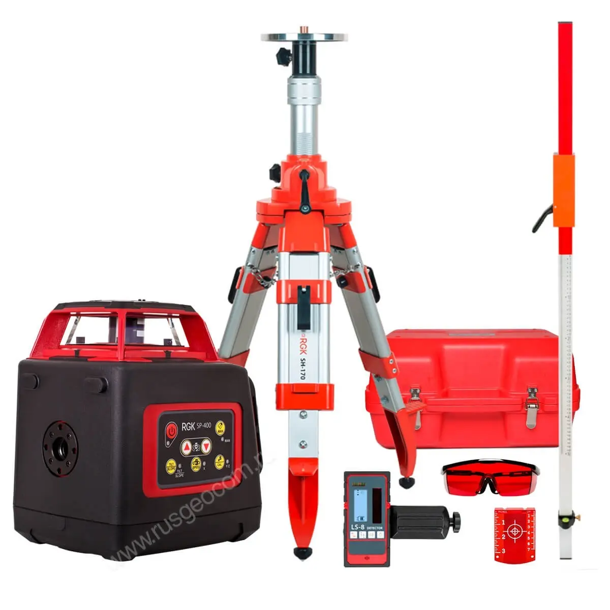 Комплект: ротационный нивелир RGK SP-400 с калибровкой + штатив RGK SH-170, рейка RGK LR-2