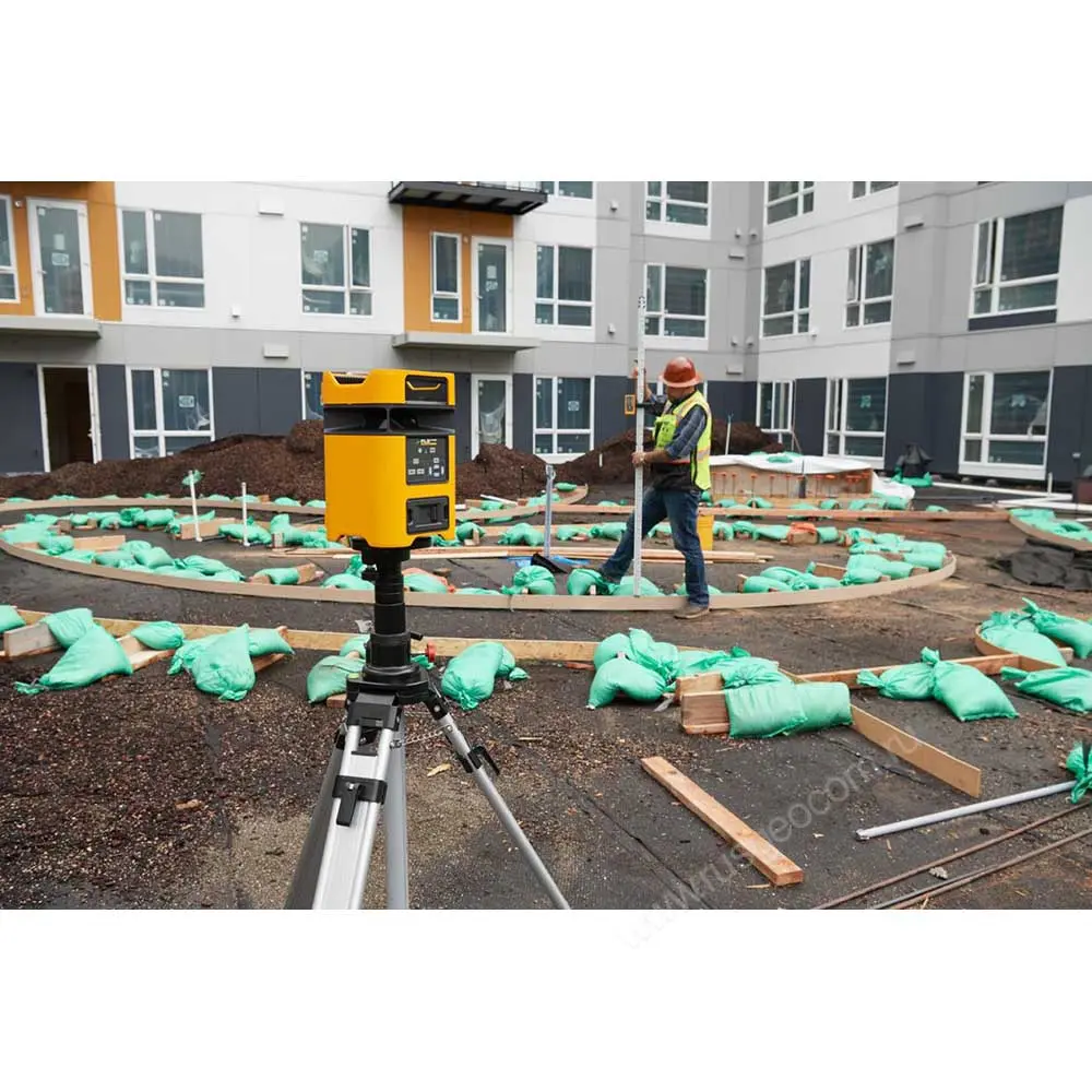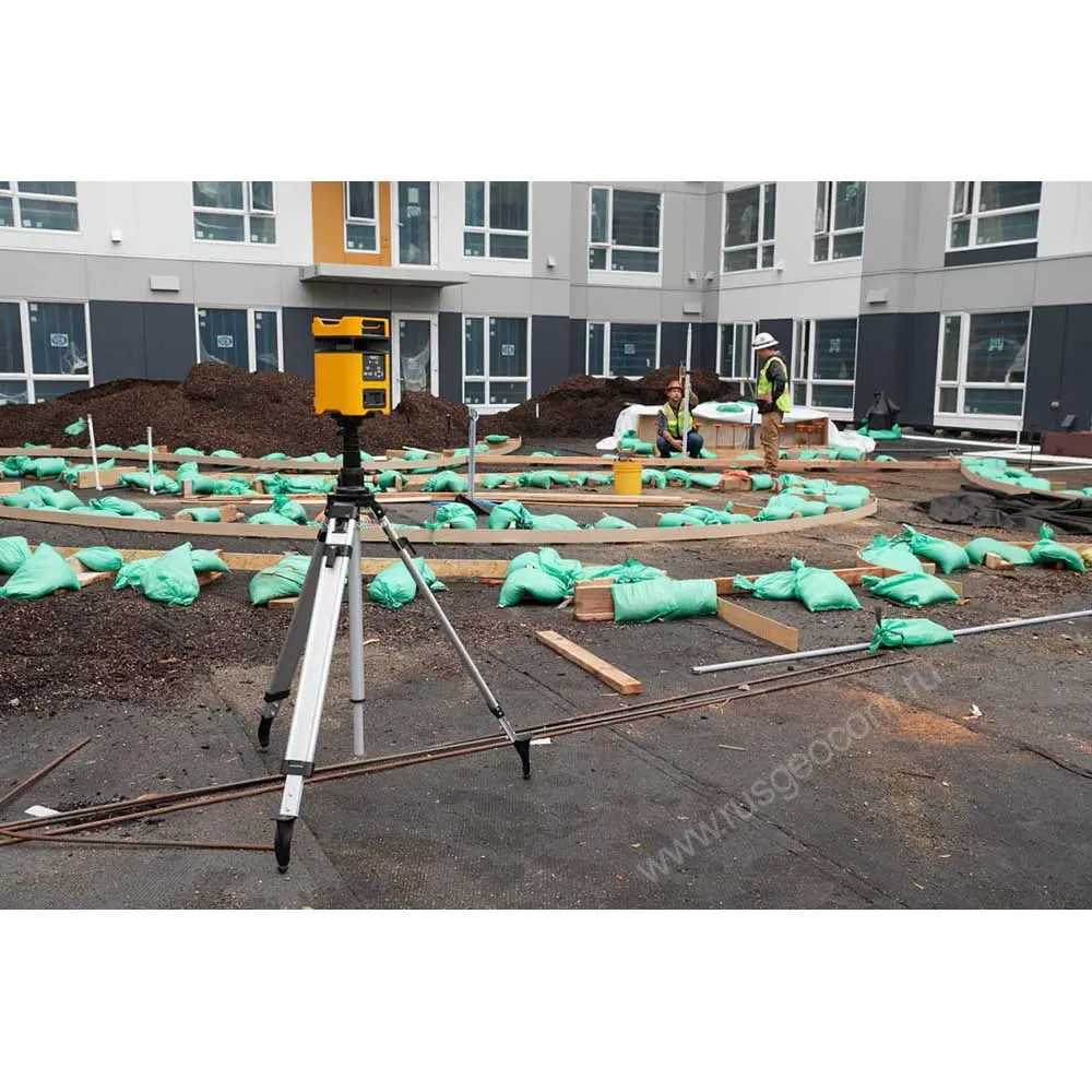 В комплект поставки входит надежный телескопический штатив, который позволяет разместить устройство на нужной высоте, приемник лазерного излучения, пульт ДУ и другие аксессуары для ротационного нивелира.