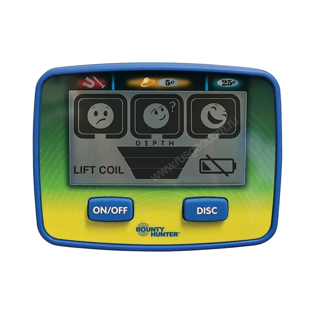 Индикация обнаружения целей выполнена не в виде численных показателей или шкалы, а в виде смайликов. Благодаря этому, освоить пользование металлоискателе Bounty Hunter Junior T.I.D и принцип работы с ним не составит труда.