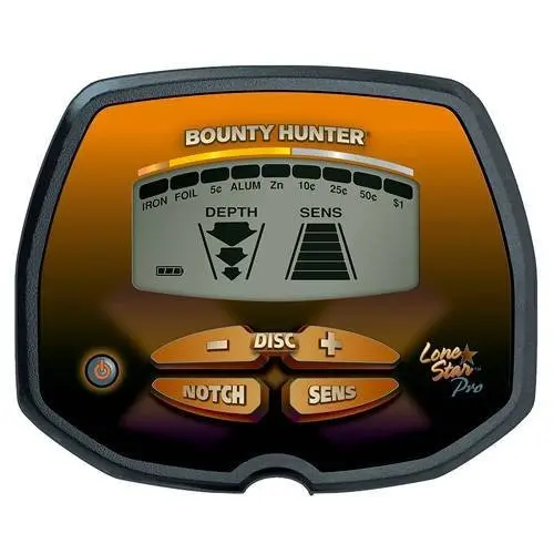 Большой монохромный дисплей металлодетектора Bounty Hunter Lone Star PRO позволяет легко идентифицировать цель до начала раскопки. На экране устройства отображается уровень заряда батареи, глубина, материал и примерная ценность находки, а также шкала чувствительности от 1 до 6. Изменяя этот параметр вы можете значительно увеличить глубину поиска.