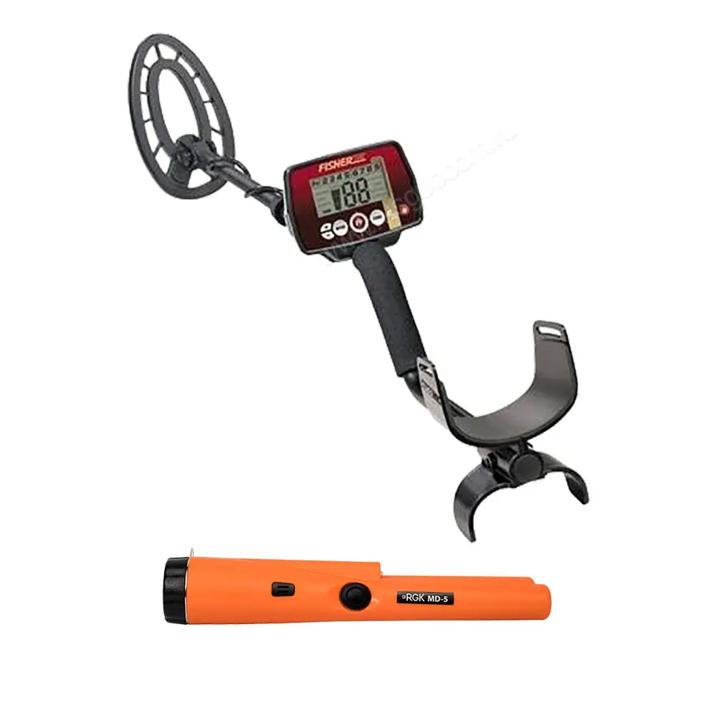 - Удобный подлокотник без необходимости в дополнительной фиксации делает металлоискатель FISHER F22 продолжением вашей руки.