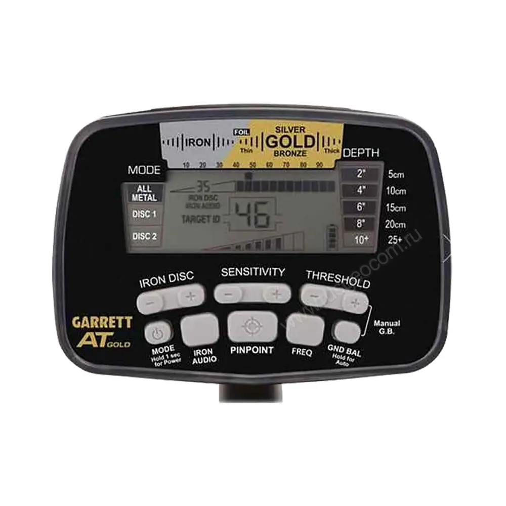 Металлоискатель GARRETT AT GOLD – модель, специализированная на поиск мелких золотых изделий и самородков, но также обеспечивающая обнаружение и идентификацию предметов, изготовленных из других металлов. Используя эту модель на суше или на мелководье пресных водоемов до 3 метров, вы получите высокую точность определения объектов вне зависимости от уровня минерализации грунта.