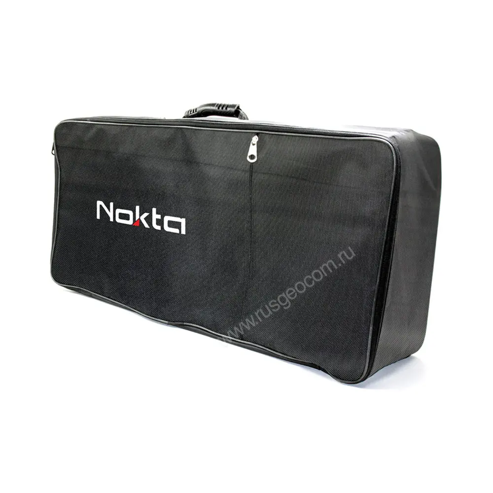 - Катушка DD 56 x 49 см, дополнительно включенная в комплект вместе с транспортировочным чехлом, способна вести поиск на большей глубине. За счет увеличенного размера на обследование значительных площадей затрачивается меньше времени.
