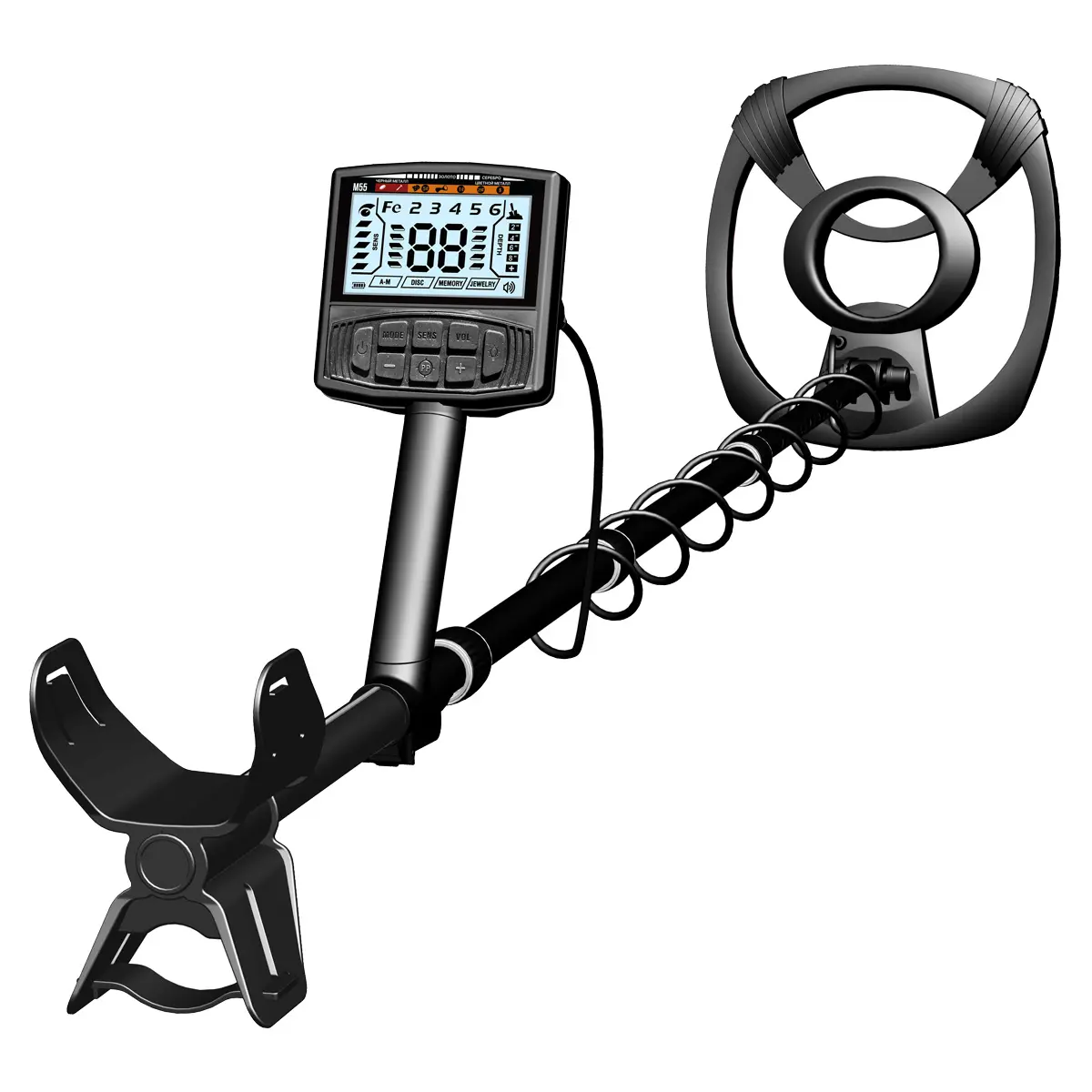 Конструкция прибора базируется на эргономичном S-образном стержне. Телескопическая нижняя штанга и регулируемое предплечье позволяют идеально подогнать детектор под рост взрослого мужчины или ребенка. Малый вес устройства исключает усталость в руках даже при многочасовом поиске. Система кулачковых замков Cam-Lock обеспечивает монолитную жесткость штанги, предотвращая люфты и ложные сигналы при взмахах.