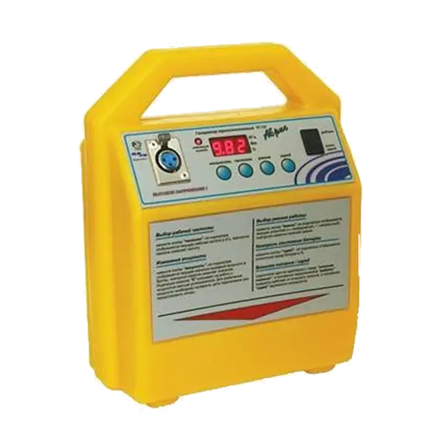 Питание генератора осуществляется от встроенной аккумуляторной батареи, при этом может осуществляться непрерывный контроль уровня заряда. Заряд батарей производится от зарядного устройства (сети переменного тока 220 В, 50 Гц ), а также от внешнего источника питания постоянного тока с напряжением от 12 до 16 вольт (бортсеть автомобиля ). Процесс заряда аккумуляторов полностью автоматизирован и контролируется встроенным микропроцессором, что увеличивает срок службы аккумуляторов и сокращает время заряда.