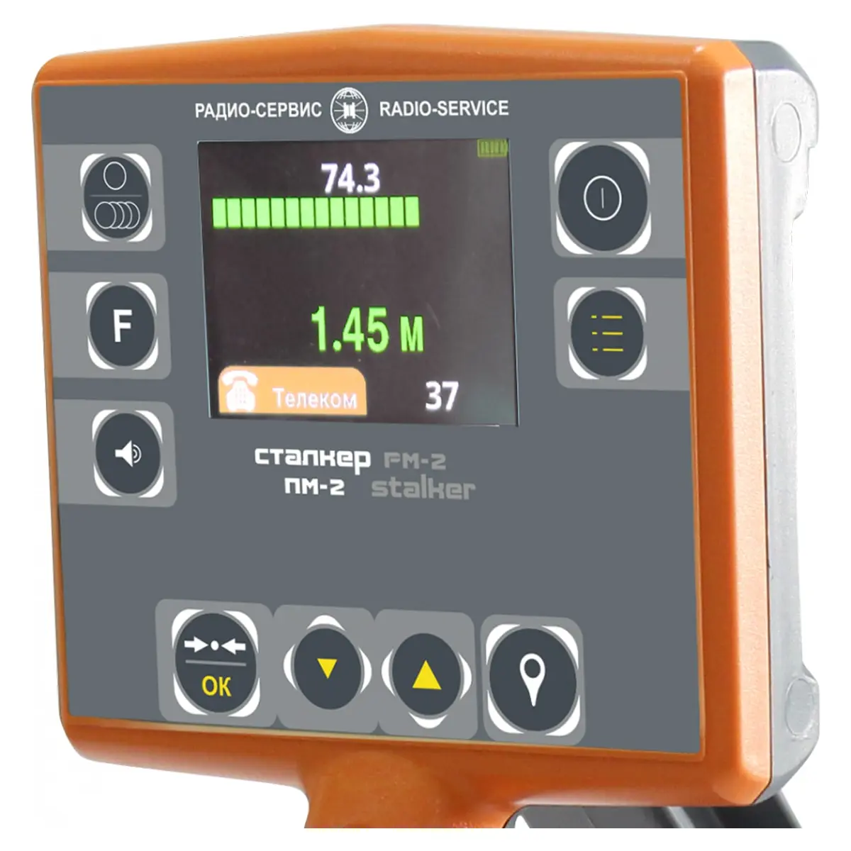 Радио-Сервис Сталкер ПМ-2 определяет не только наличие маркера, но и его глубину залегания — для этого достаточно удерживать прибор неподвижно над точкой максимума сигнала в течение 3 секунд. Система автоматически вычисляет глубину и отображает ее на экране. Наиболее достоверным считается минимальное значение глубины, полученное при нескольких замерах.