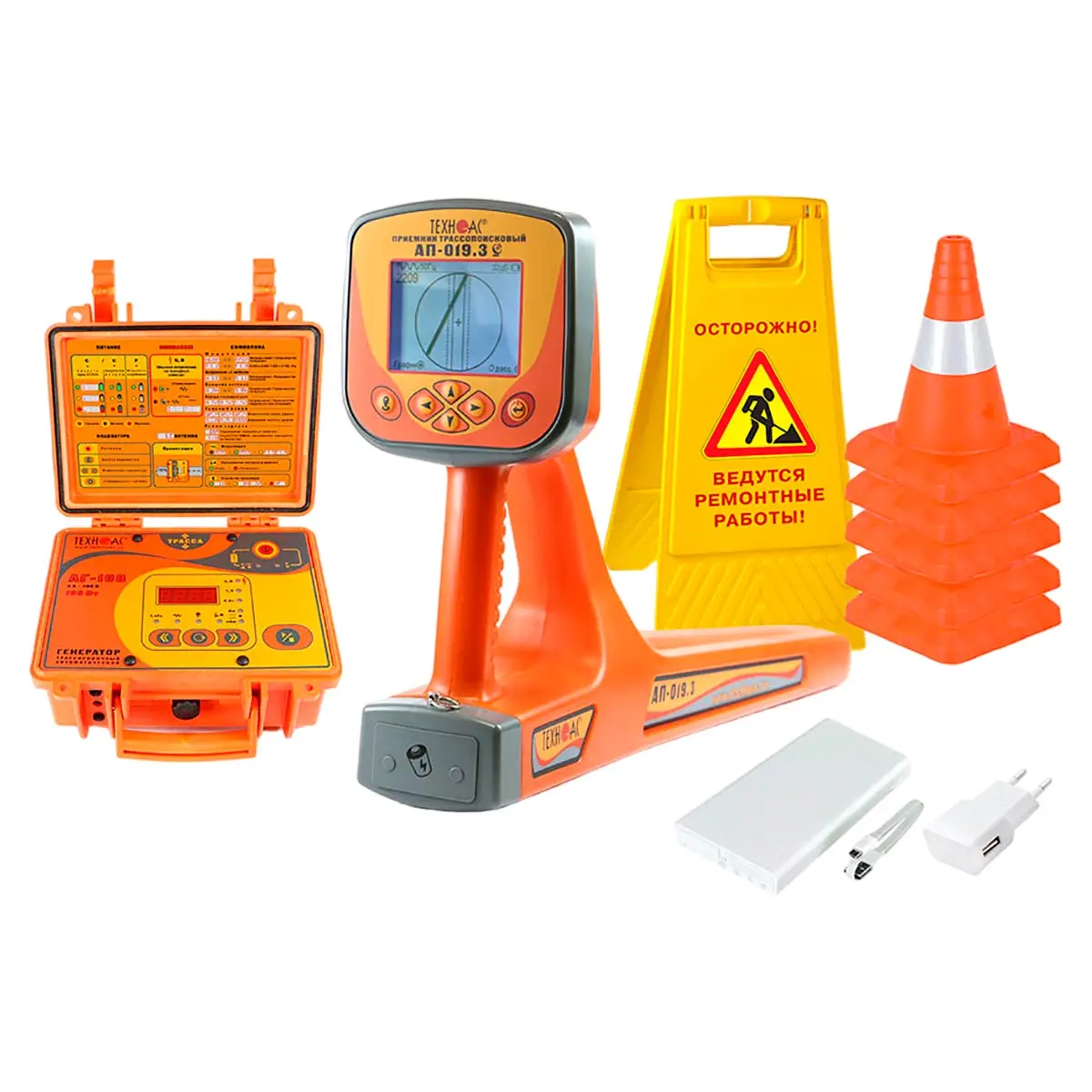 - 2D визуализация положения трассы относительно прибора - глубина залегания трассы - ток сигнала - графики уровня сигнала - сила сигнала - параметры настройки и управления