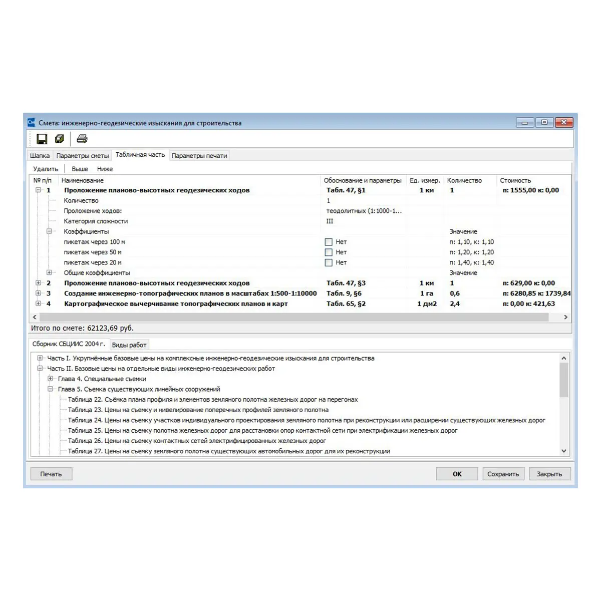 • комплексная смета (на основе созданных смет);
