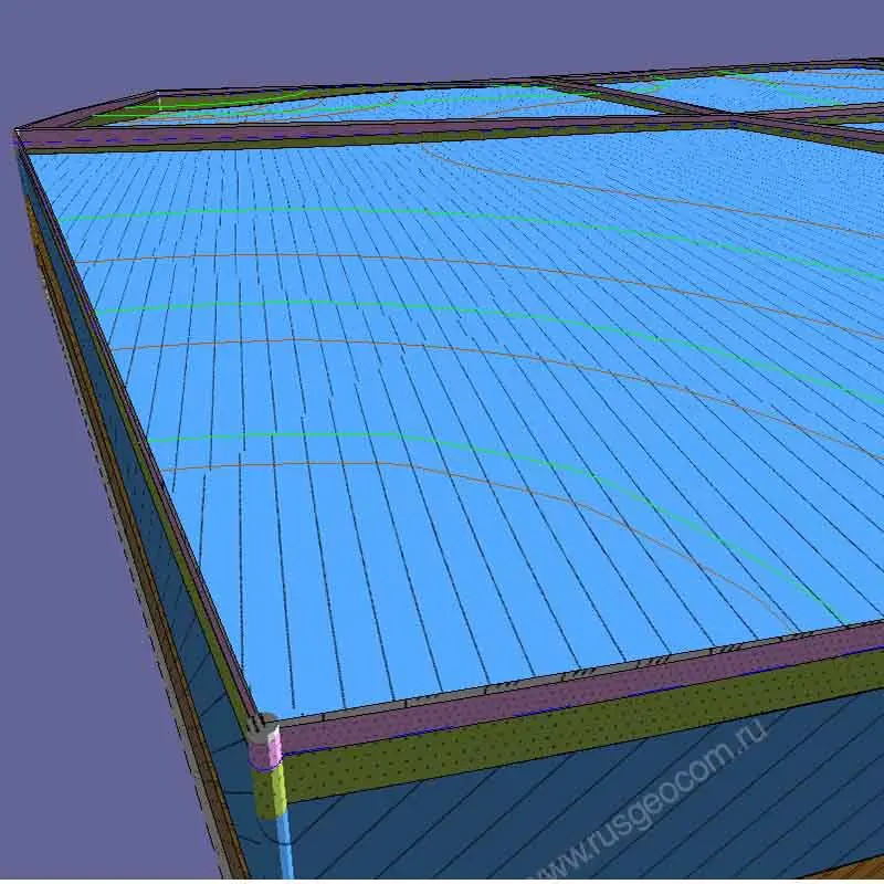 В системе создается объемная геологическая модель, причем при ее формировании автоматически учитываются все введенные данные. ОГМ предназначена для моделирования геологического строения на всей площадке и позволяет интерполировать его в произвольной точке.