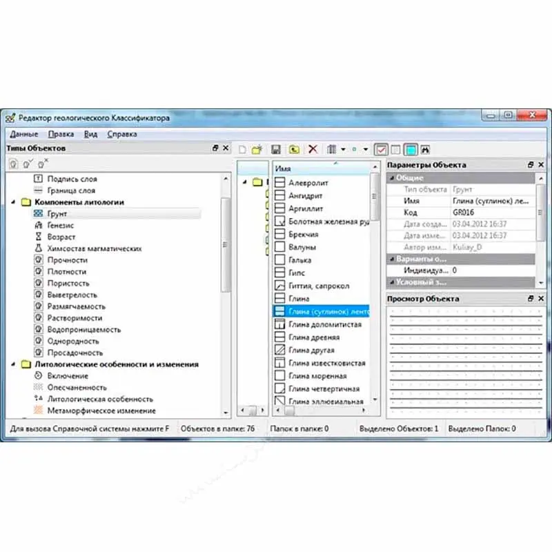 Списки грунтов можно создавать для каждого отдельного объекта либо формировать глобальный список грунтов, специфичных для региона или соответствующих принятому в организации классификатору.