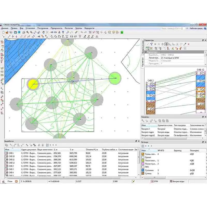 Система предусматривает возможность работы с различными типами исходных данных: геологическими скважинами, списками грунтов, различными топоосновами.