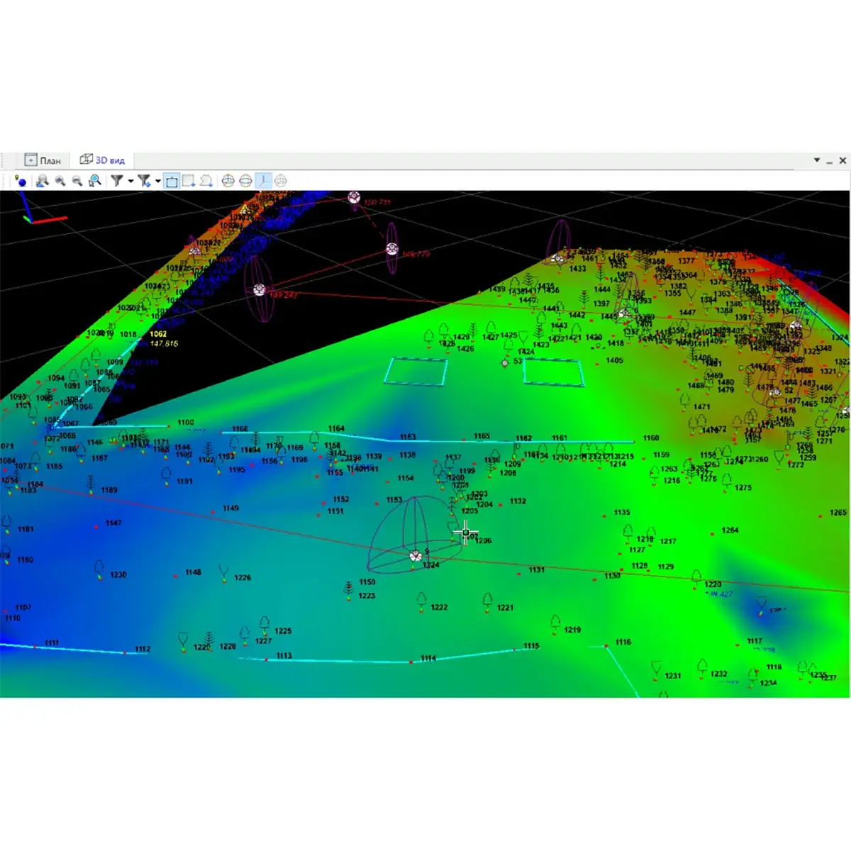 • сформированная цифровая модель местности или цифровая модель рельефа с возможностью экспорта для дальнейшей работы в форматах TopoXML (ТИМ КРЕДО), LandXML, DXF, MIF/MID (MapInfo);