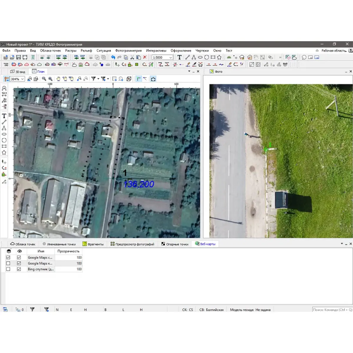 В ТИМ КРЕДО ФОТОГРАММЕТРИЯ поддерживается работа с растровыми картами, планами, аэрофотоснимками в различных форматах (CRF, BMP, TIFF, JPEG, PNG, TMD и т.д.), с веб-картами картографических Интернет-сервисов Google Maps и Bing, также возможно добавление пользовательских файловых серверов.