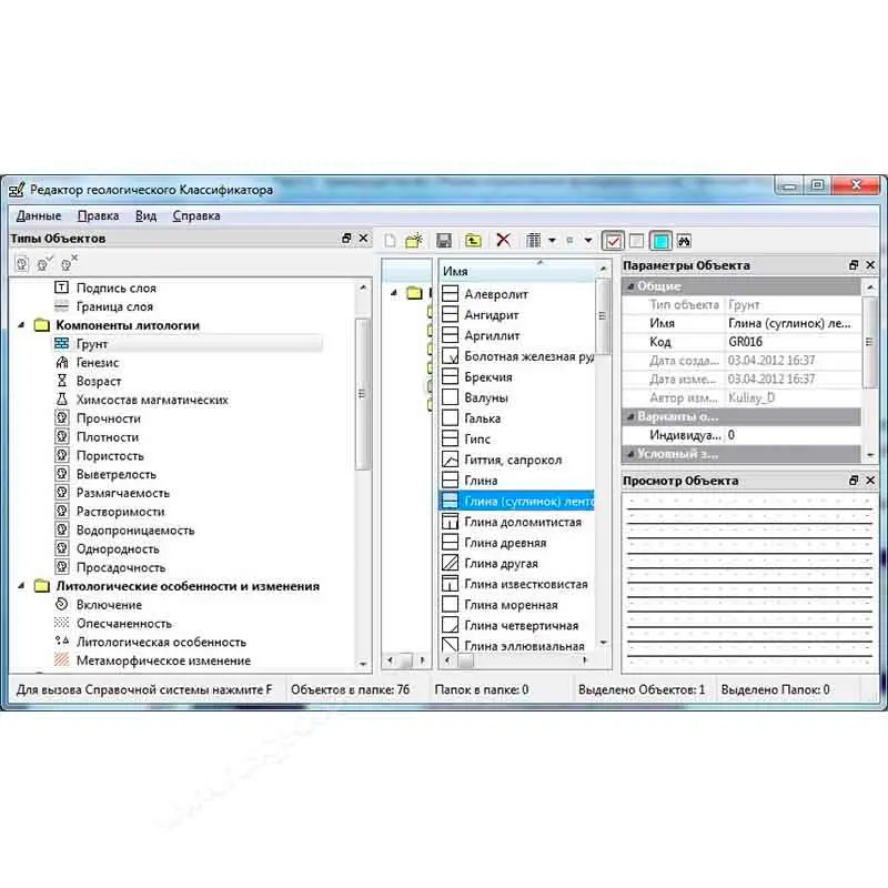 С ТИМ КРЕДО ГЕОЛОГИЯ поставляется библиотека геологических данных различных типов, описывающих стратиграфические, генетические, литологические и другие свойства объектов геологических изысканий, а также общие разделяемые ресурсы содержащие необходимые наборы типов линий, штриховок, шаблонов чертежей и ведомостей необходимых для формирования инженерно-геологического отчета.