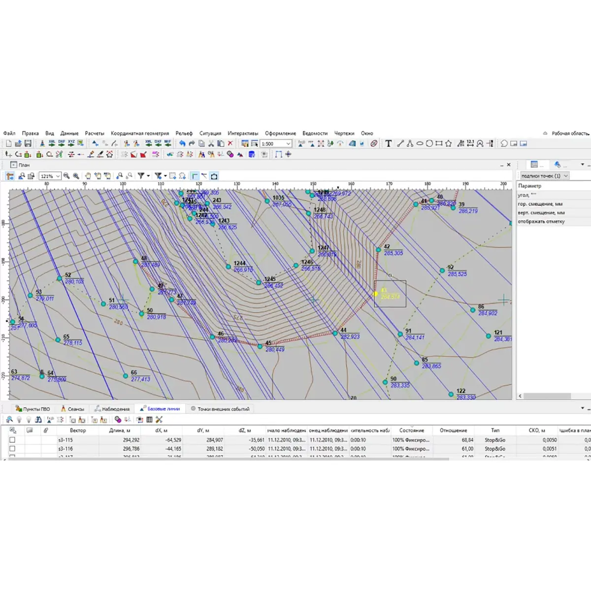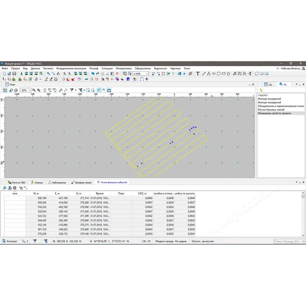 На всех этапах обработки и уравнивания данных подсистема ТИМ КРЕДО ГНСС осуществляет графическую иллюстрацию действий, что позволяет визуально контролировать решаемые задачи.