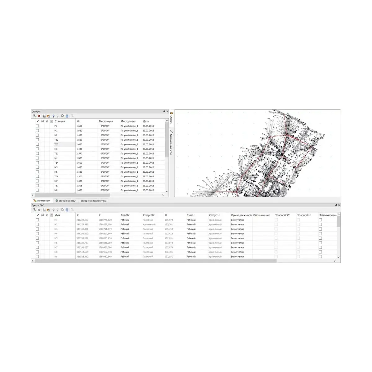 • импорт и обработка данных полевых измерений с тахеометров;