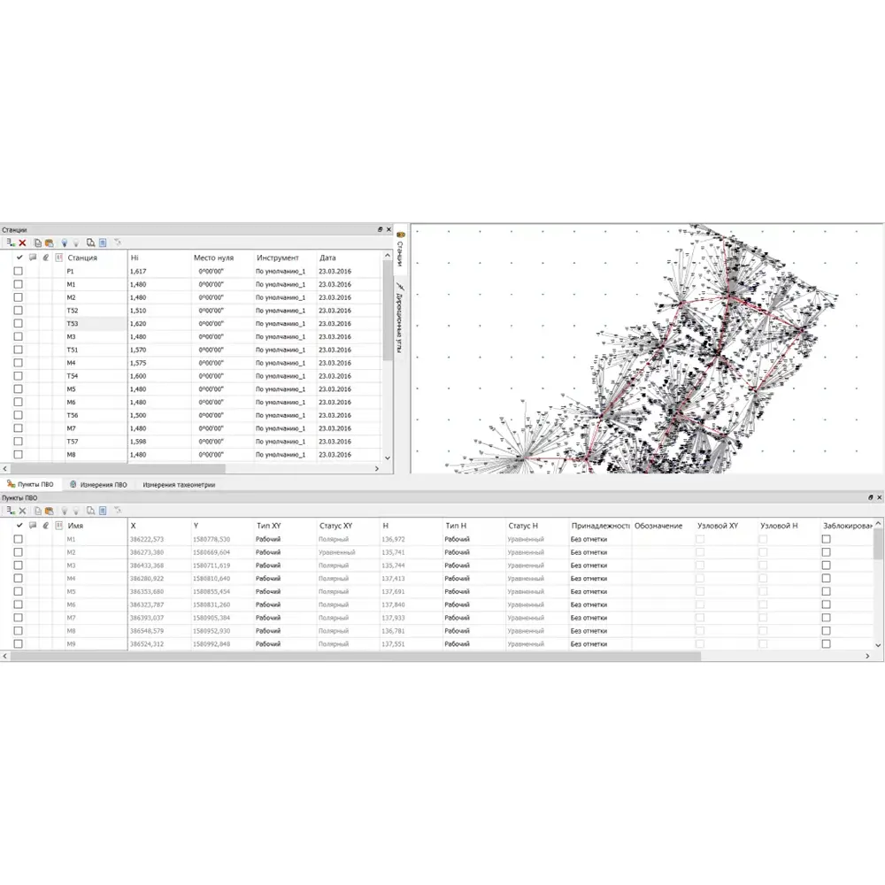 - импорт и обработка данных полевых измерений с тахеометров;