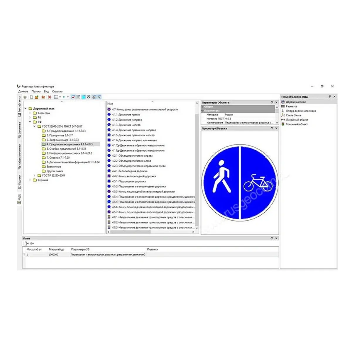 Для различных технических средств организации дорожного движения разработаны специальные объекты тематического классификатора. Присутствует возможность их редактирования и дополнения классификатора новыми элементами: как самими объектами организации движения, так и разнообразными подписями, и семантическими свойствами — через Редактор классификатора.