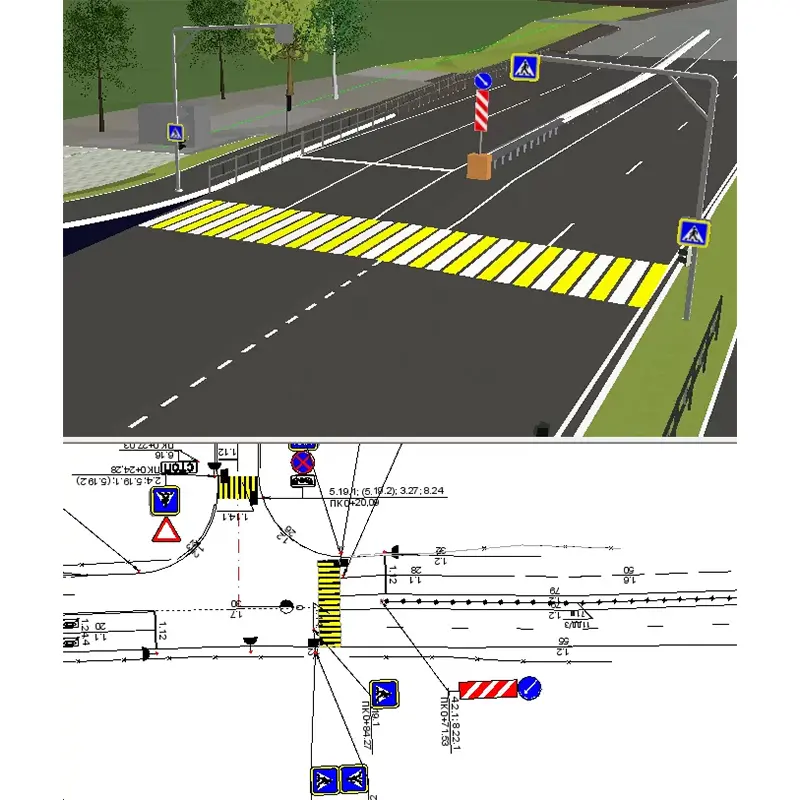 • автоматизированный расчет дорожных знаков, точечной и линейной разметки.
