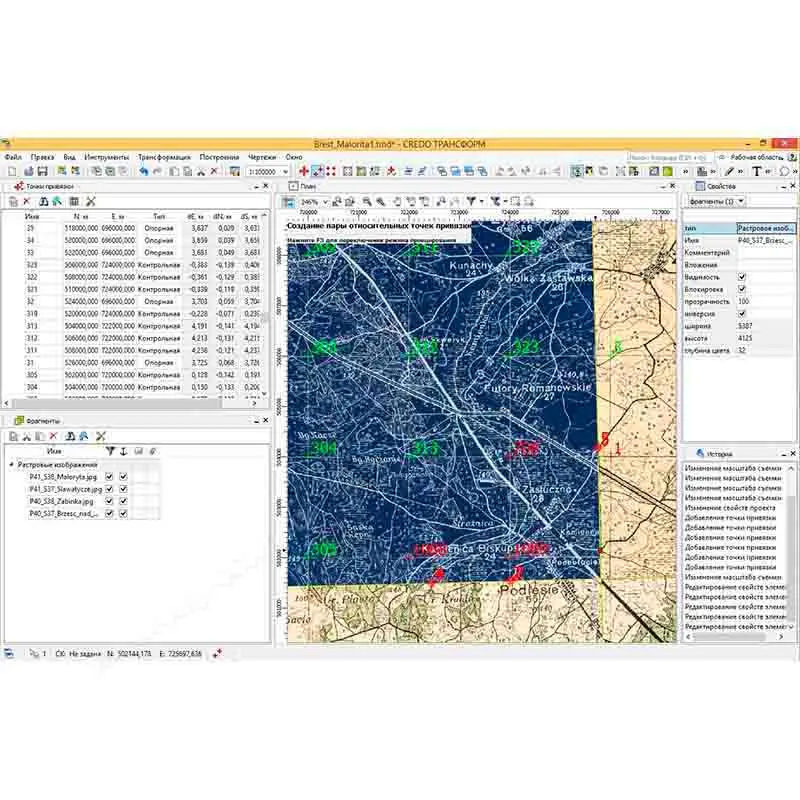 ТИМ КРЕДО ТРАНСФОРМ предлагает разнообразный функционал для обработки и трансформации в пользовательской системе координат исходных растровых изображений: