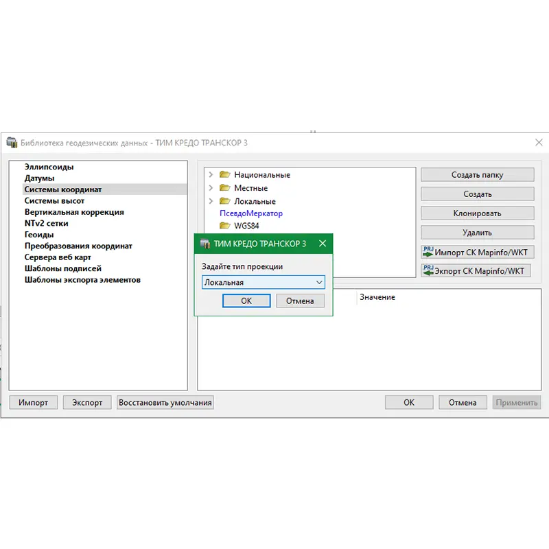 • Файлы mapinfow.prj (наборы параметров систем координат из MAPINFO).