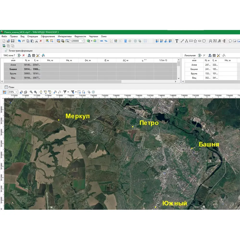 Выходные данные могут быть сохранены в файлах форматов LandXML, KML, GPX и в текстовом формате с гибкой настройкой формата по шаблону. Предоставляемая ТИМ КРЕДО ТРАНСКОР возможность расчета не только математической связи двух плоских систем координат, но и расчета ключа МСК, позволяет использовать полученные данные в сторонних программах постобработки спутниковых наблюдений.
