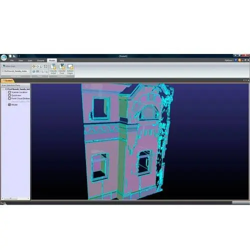 Для обработки данных лазерного сканирования используется специальный алгоритм, разработанный и запатентованный компанией Topcon. Он позволяет быстро и эффективно обрабатывать огромные объемы информации, автоматически определяя в облаках точек плоские поверхности. Найденные точки одной поверхности объединяются в группы, группы в кластеры, кластеры в регионы, и так далее.
