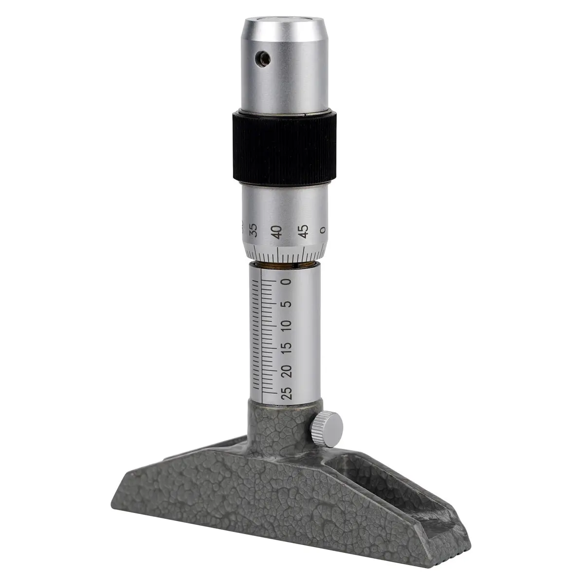 Для обеспечения повторяемости получаемых результатов глубиномер оборудован механизмом, который нормирует усилие подачи микрометрической головки, обеспечивая прокручивание барабана после соприкосновения нижней измерительной плоскости с объектом контроля – дном отверстия или углубления, либо нижней ступенькой выступа.