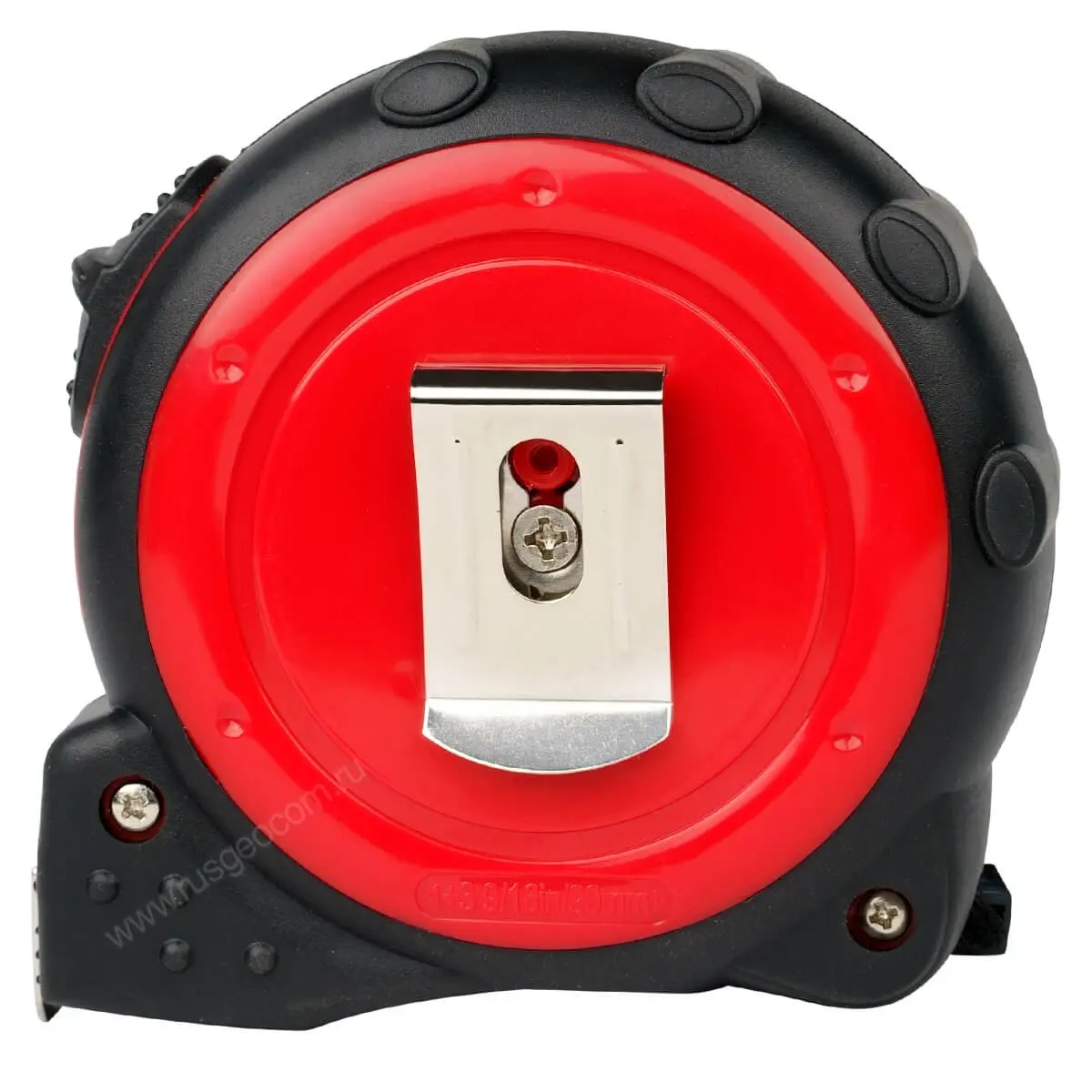 Инструмент оснащен всеми привычными решениями для крепления в полевых условиях или в мастерской - металлической клипсой и ремешком. Рельефные вставки на корпусе помогают удерживать рулетку. За счет особой формы кнопкой блокировки удобно пользоваться даже в толстых перчатках.