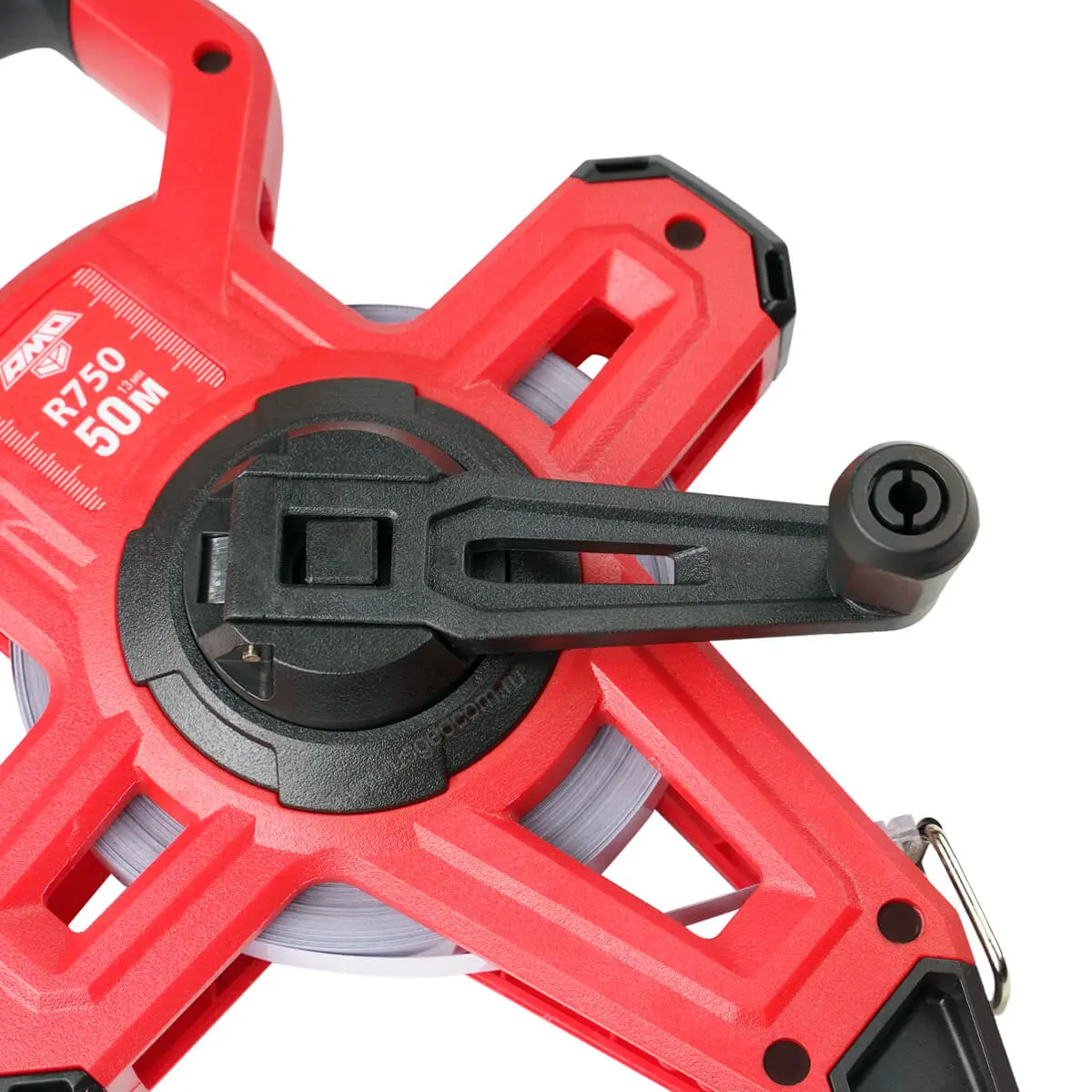 Рулетка измерительная AMO R750 длиной 50 метров - специализированный инструмент для строителей, геодезистов и кадастровых инженеров. Чаще всего она используется для измерений земельных участков, больших помещений и конструкций. Эта модель относится ко второму классу точности, благодаря чему специалист может быть уверен в достоверности результатов и качестве полученных данных.