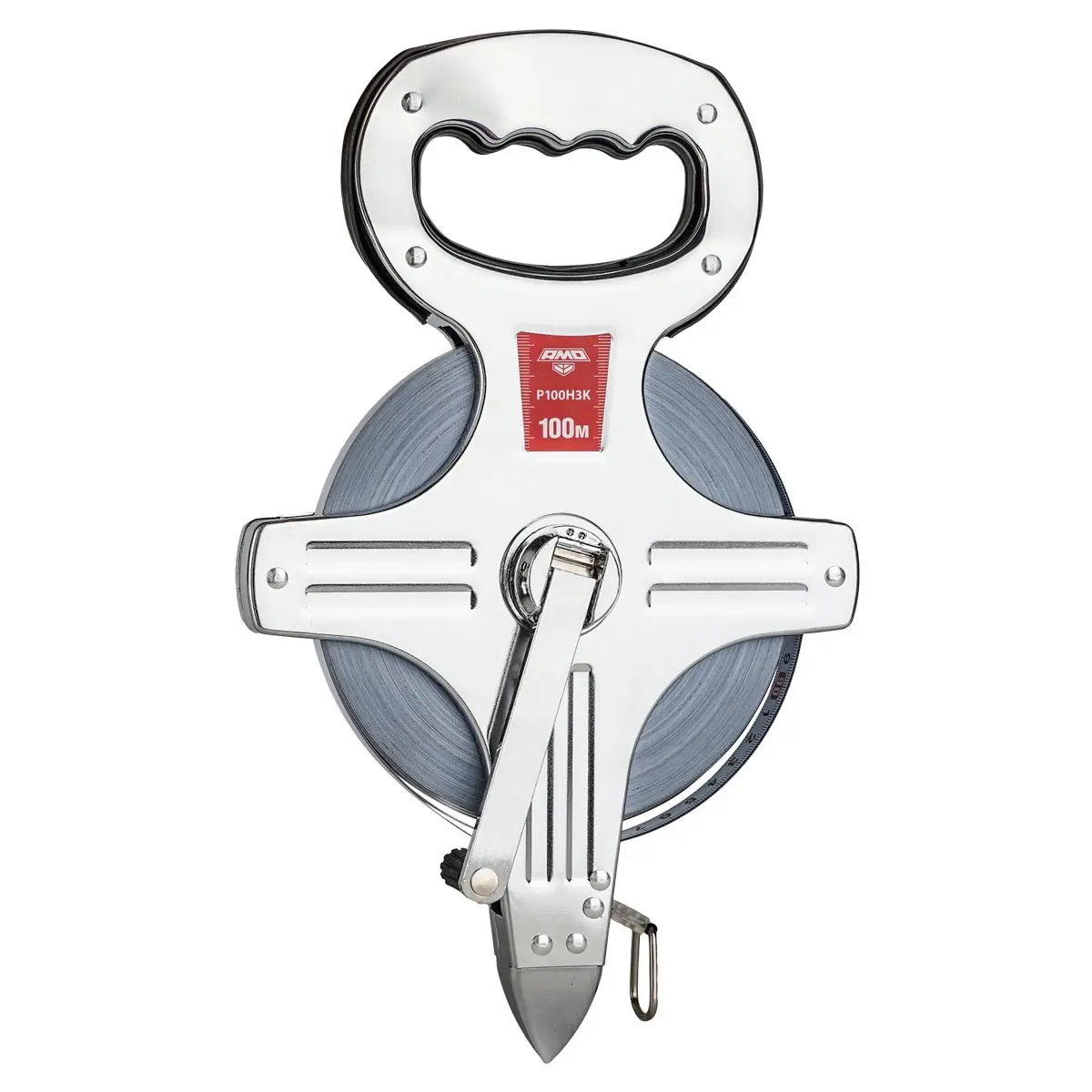 Рулетка измерительная AMO Р100Н3К со 100-метровым полотном, изготовленная согласно требований ГОСТ 7502, предназначена для обмеров участков и крупноразмерных объектов, а также может использоваться для разметочных работ. Изделие соответствует 3 классу точности и, за счет реализации прямого метода измерений, с непосредственным считыванием показаний с миллиметровой шкалы при установке мерного полотна на выбранной начальной и конечной точками, обеспечивает высокую достоверность получаемых результатов.