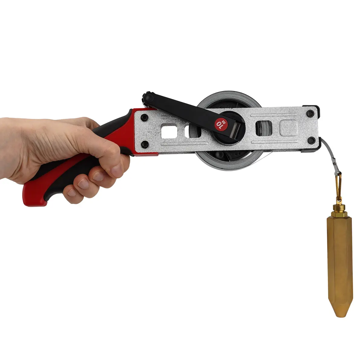 - Простота применения – в процессе выполнения измерений в вертикальной плоскости для поддержания мерного полотна в натянутом состоянии с установленным усилием и с целью достижения заявленной точности, на вытяжном конце измерительной рулетки закреплен медный груз 300 гр. это позволяет измерять глубины резервуаров и уровень жидкости в них.