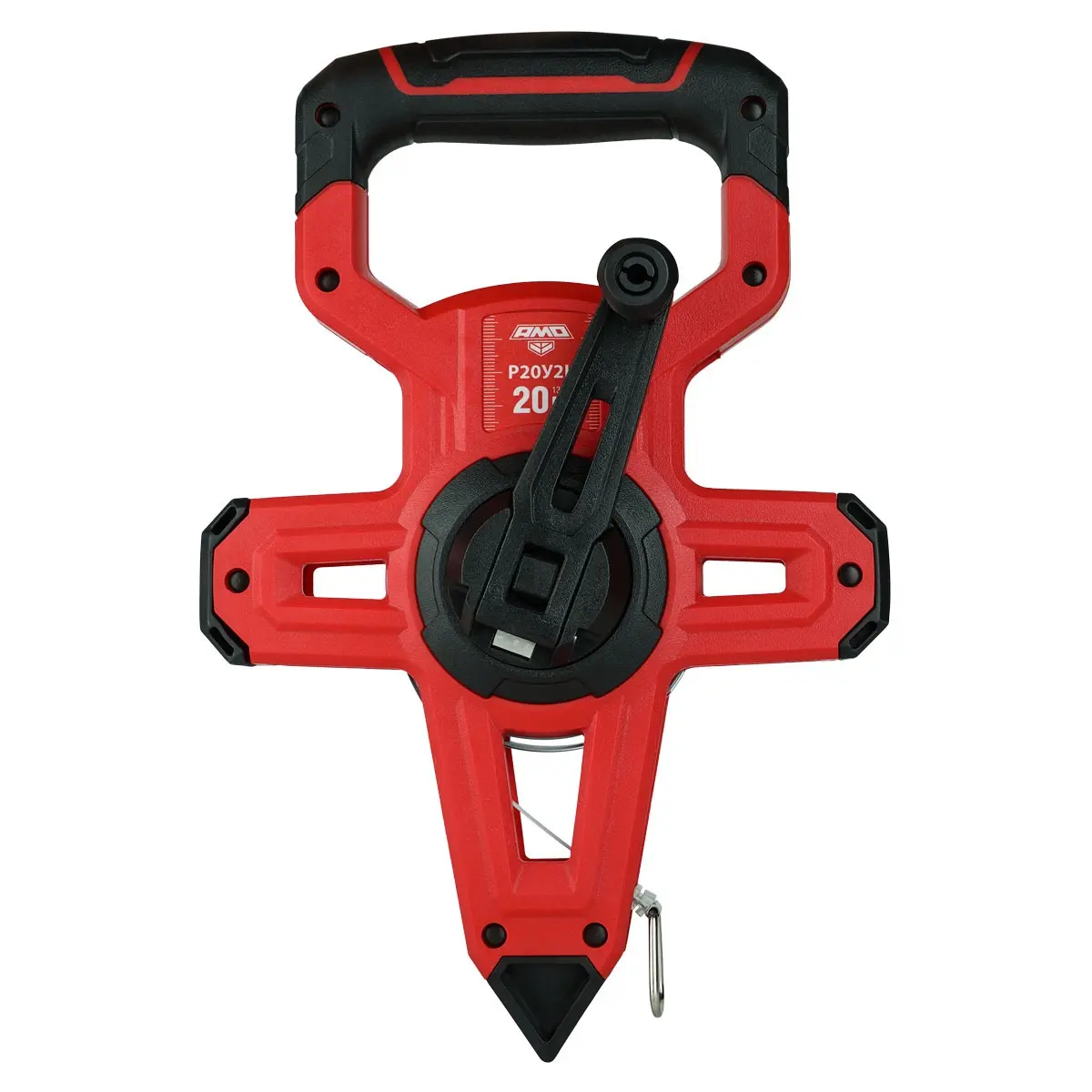 Рулетка измерительная AMO Р20У2К, оснащенная открытым корпусом и 20-метровой лентой из углеродистой стали, с эмалевым покрытием и кольцом для зацепа на свободном конце, может применяться в ходе топогеодезической съемки, строительных и других работ. Инструмент обеспечивает определение расстояний и линейных размеров методом прямого считывания показаний с миллиметровой шкалы, а также выполнение работ по разметке. Изделие соответствует II классу точности.