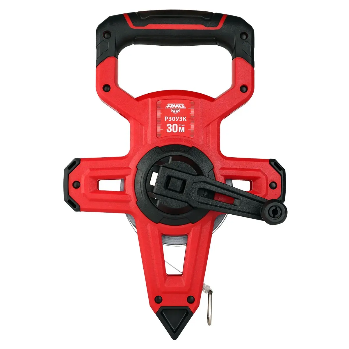 Рулетка измерительная AMO Р30У3К – мерный инструмент III класса точности, выполненный в соответствии с требованиями ГОСТ 7502, предназначенный для контроля линейных размеров, определения расстояний и разметочных работ. Модель оснащена заключенной в открытом корпусе 30-метровой мерной лентой, изготовленной из углеродистой стали и прошедшей термообработку для улучшения эксплуатационных характеристик. Изделие может использоваться на разных этапах строительных работ, в геодезической и кадастровой практике, при проведении официальных спортивных соревнований, регистрации ДТП и в других отраслях, подпадающих под государственное регулирование.