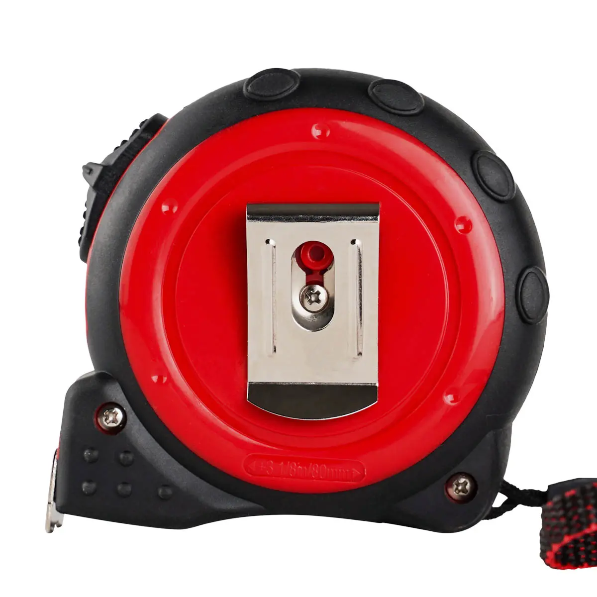 Ориентированная на использование как в помещениях, так и на открытом воздухе, в том числе в жестких полевых условиях, измерительная рулетка выполнена в легком, но прочном пластиковом корпусе с дополнительным покрытием из термопластичной резины, обеспечивающим улучшенную защиту от ударов и падений. Мерное полотно желобчатого типа шириной 25 мм изготовлено из углеродистой стали, не подверженной деформационному растяжению и защищенной от ржавления эмалевым покрытием. Лента удерживает прямолинейную форму при значительном вылете мерной части, что позволяет выполнять измерения без необходимости принудительного ее натяжения. Прямоугольная торцевая часть измерителя, закрепленная на полотне с помощью заклепок, может смещаться, обеспечивая неизменность начала отсчетов при обмерах внутренних и наружных размеров.