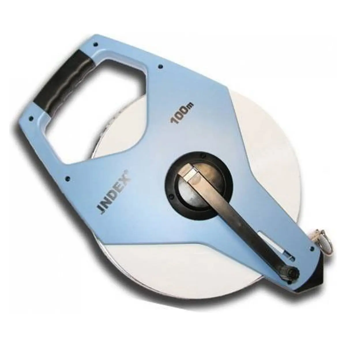 100 метровая рулетка в открытом корпусе со стальной лентой с износостойким нейлоновым покрытием. Снабжена металлическим сердечником, имеет систему ускоренной намотки.