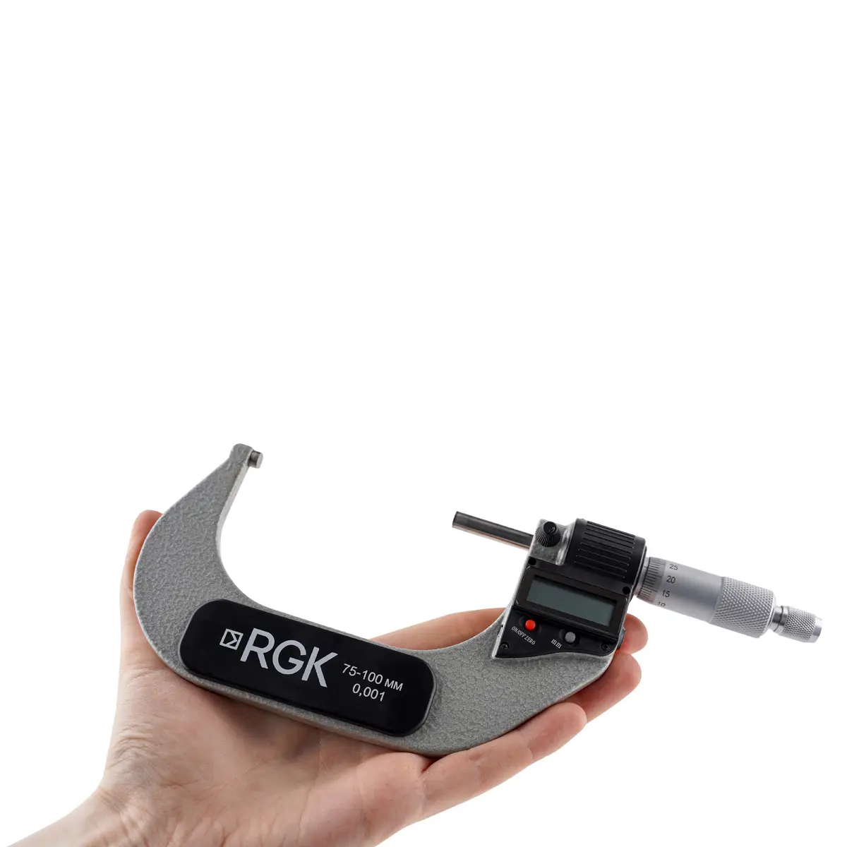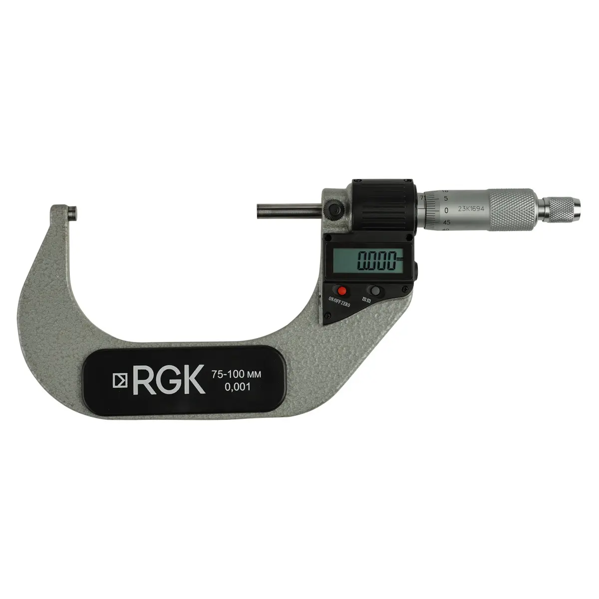 Электронный микрометр RGK MC-100 - высокоточный инструмент с цифровым блоком измерения и традиционным механическим отсчетным устройством со шкалами на стебле и барабане. При выполнении замеров контактным методом, прибор позволяет определять наружные размеры объектов контроля и их элементов в диапазоне от 75 до 100 мм с разрешением 0,001 мм, с погрешностью не более ±0,003 мм.