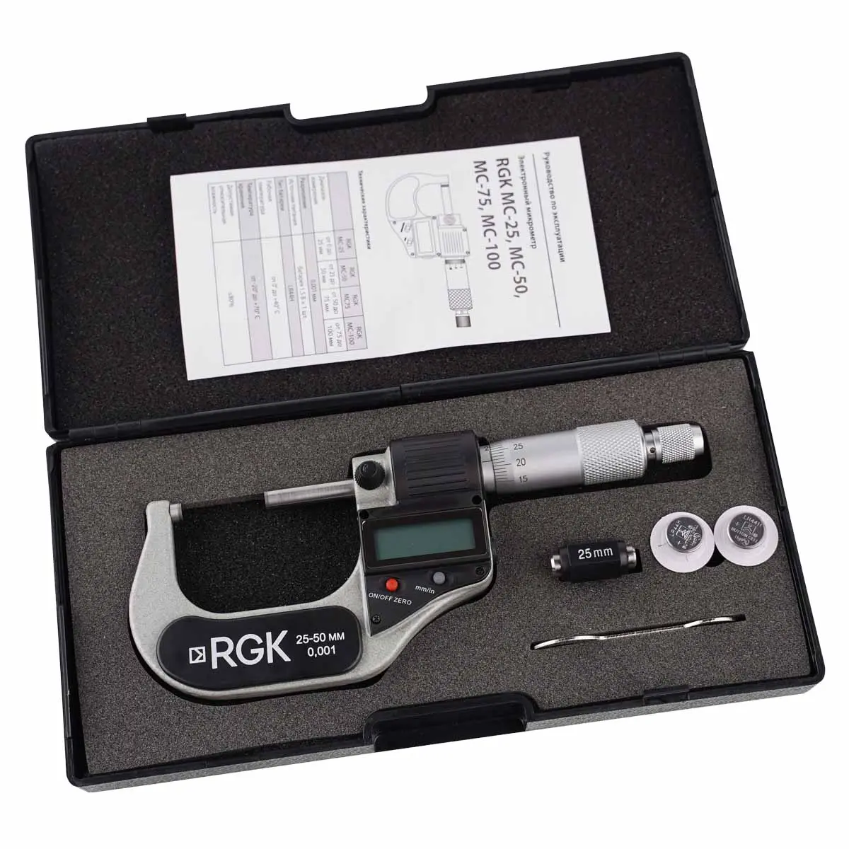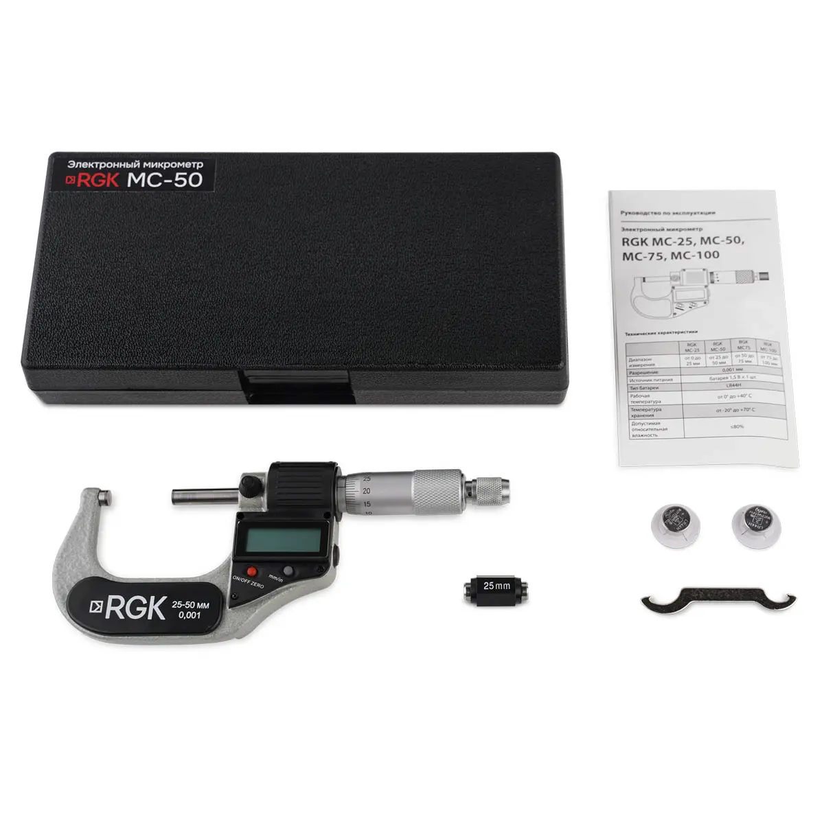 Купить электронный микрометр RGK MC-50, а также получить консультацию специалистов об особенностях и преимуществах данного изделия вы можете в нашем магазине , связавшись с нами по телефону или непосредственно через сайт – с помощью формы обратной связи или воспользовавшись чатом с онлайн-консультантом.