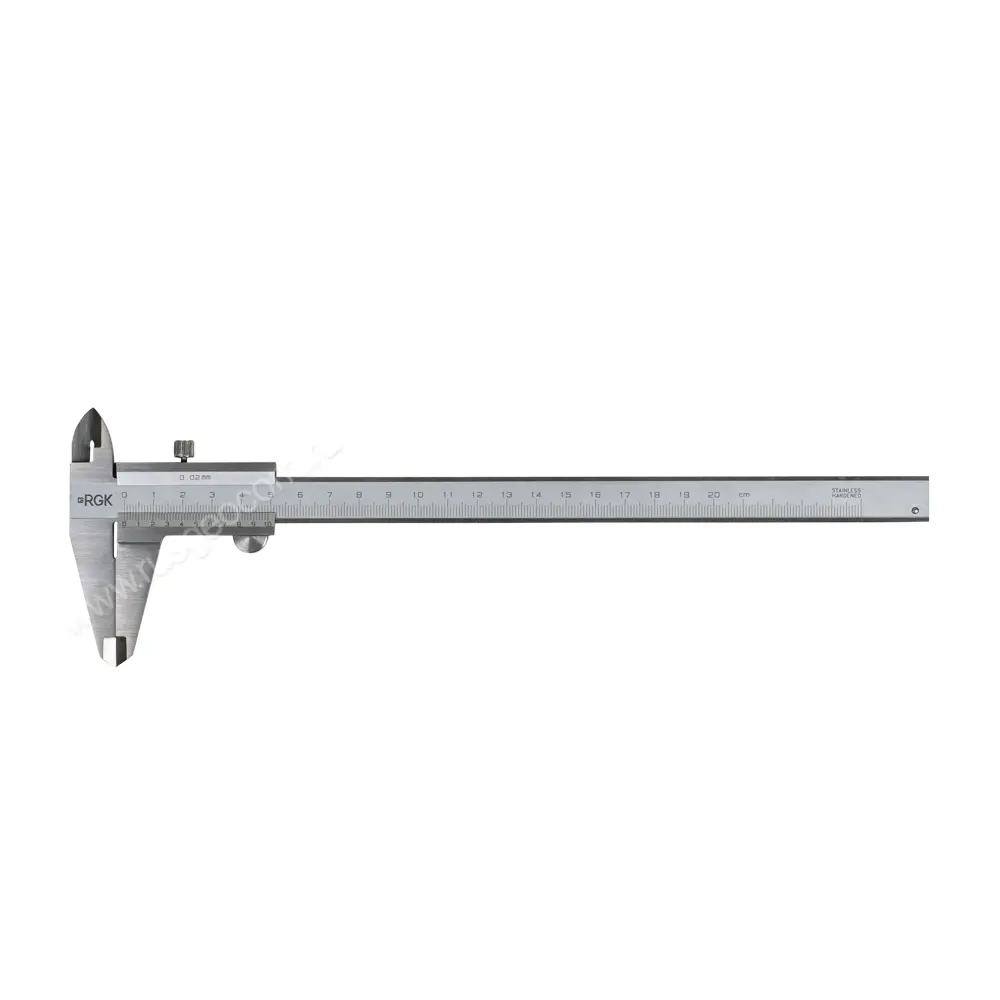 Цена деления нониусной шкалы составляет 0.02 мм. Рамка штангенциркуля RGK SCM-200 оборудована стопорным винтом, который упрощает перенос размеров и ведение записей. Кроме того, рамка оборудована винтом плавной настройки положения, благодаря чему устройством удобно пользоваться одной рукой.