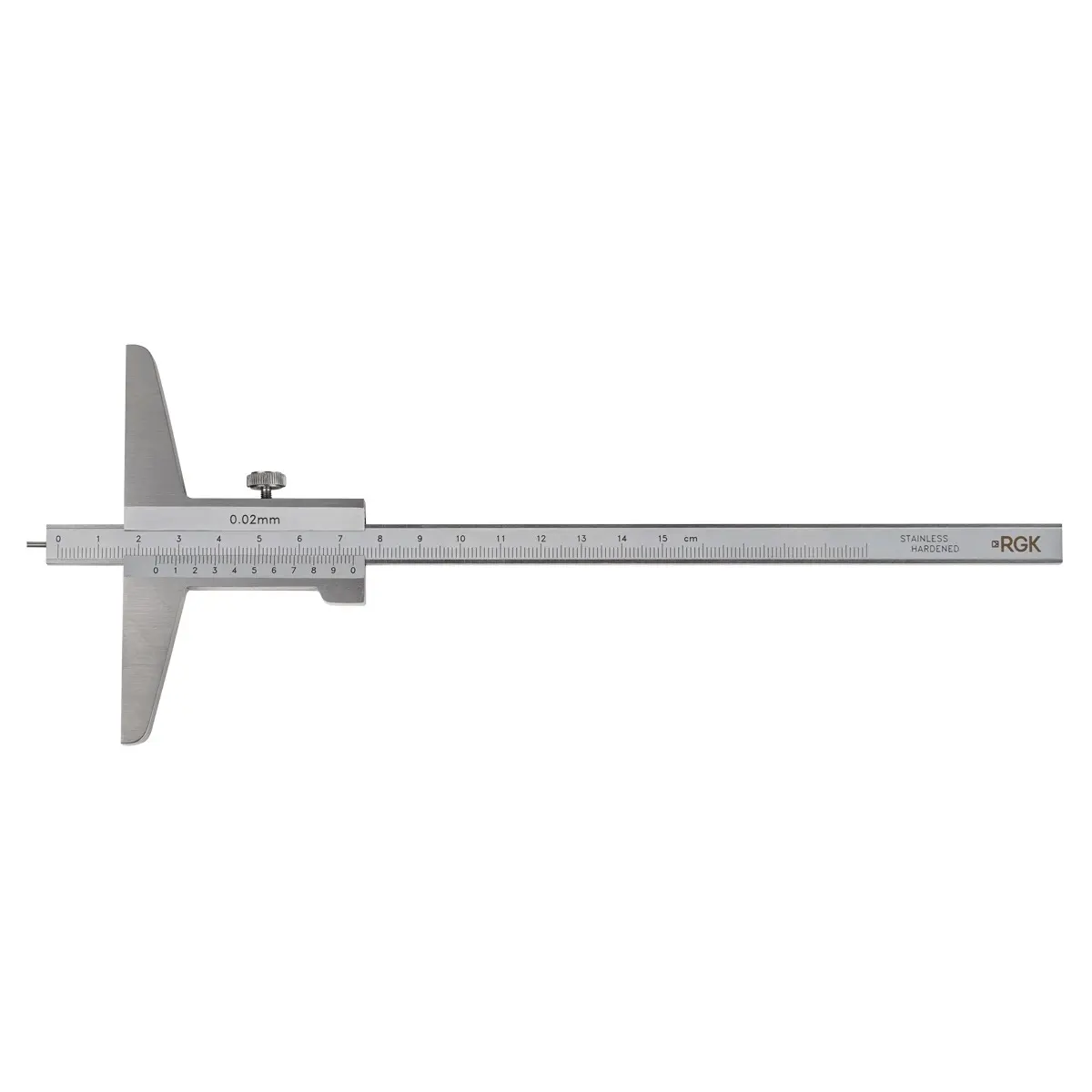 Штангенглубиномер RGK SCGM-150 относится к ручным механическим инструментам раздвижного типа, предназначенным для контроля геометрических параметров изделий и деталей в ходе изготовления и ремонта. Он позволяет производить измерение высот и глубин в диапазоне до 150 мм, считывая показания по нониусу с разрешением 0,02 мм, а также выполнять необходимую разметку. Устройство изготовлено из закаленной нержавеющей стали и характеризуется неприхотливостью и высокой износостойкостью, благодаря чему подходит для использования в жестких промышленных и полевых условиях.
