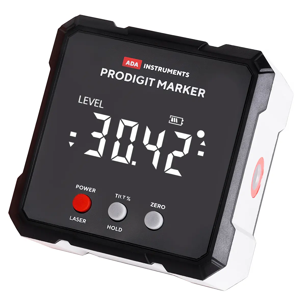 Электронный уровень ADA ProDigit MARKER позволяет быстро и точно определить угол отклонения поверхности от горизонта или вертикали.
