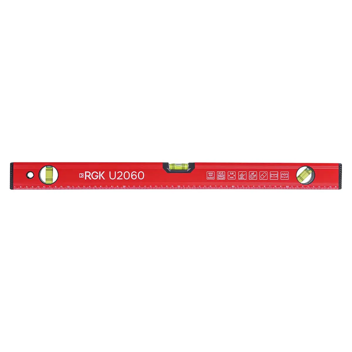 Магнитный уровень RGK U2060 длиной 60 сантиметров оснащен тремя ампулами, расположенными горизонтально, вертикально и под углом 45°. Боковые пластиковые вставки защищают уровень при падении. За счет магнита вы можете закрепить уровень на металлических поверхностях, чтобы освободить руки при проведении разметки.