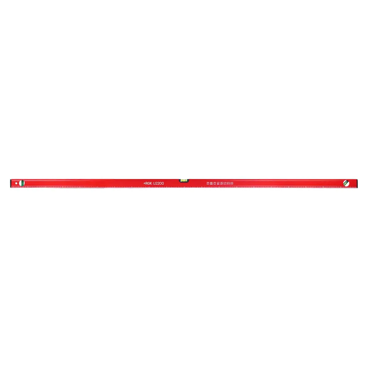 Пузырьковый уровень RGK U2200, рабочая длина которого составляет 2 м, позволяет выполнять проверку прямолинейности и ровности поверхностей, а также производить выравнивание и разметочные работы на плоскостях большой площади. Инструмент оснащен тремя колбами для контроля горизонтального и вертикального положения, и 45-градусного уклона. Магнитные уровни серии U2 выполнены в красной расцветке, что обеспечивает хорошую заметность на строительной площадке и минимизирует риск случайного повреждения.
