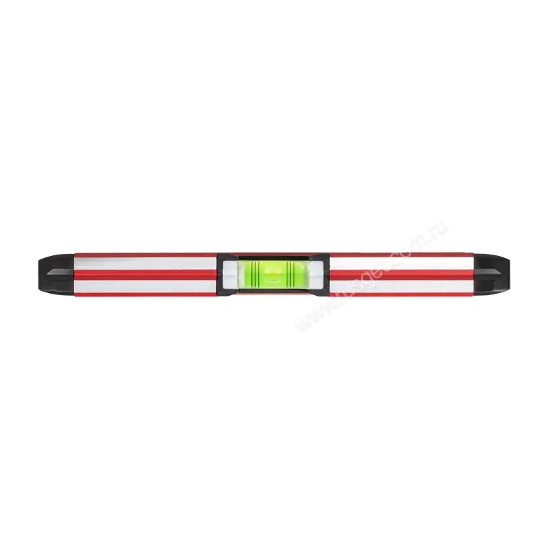 Длина инструмента в 250 мм позволяет легко использовать его одной рукой. Еще больше упрощает задачу наличие встроенного магнита для крепления на любой металлической поверхности. Имеется 3 ампулы: для горизонтального, вертикального положения и проверки по диагонали.