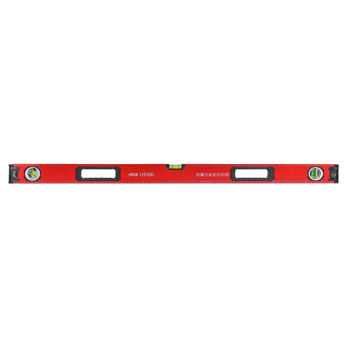 Боковые вставки из ударопрочного пластика защищают строительный уровень RGK U5100 от повреждений при падении на твердую поверхность. Стекло ампул выполнено из акрила, за счет чего ампулы не протекают и не мутнеют в течение срока службы.