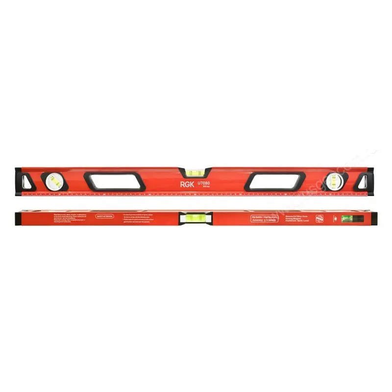 Магнитный уровень RGK U7080 длиной 80 сантиметров оснащен магнитом для крепления на металлических поверхностях, чтобы освободить руки при проведении разметки Специальное смотровое окошко на узком ребре покажет положение пузырька вертикального уровня при измерениях в труднодоступных местах.