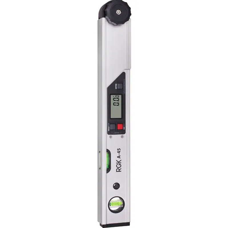 Цифровой угломер RGK A-45 позволяет точно определять углы наклона и скоса. Данный прибор широко применяется в плотницких, столярных и строительных работах, включая монтаж плинтусов и потолочных карнизов, крыш, стропил, перекрытий и т.п.